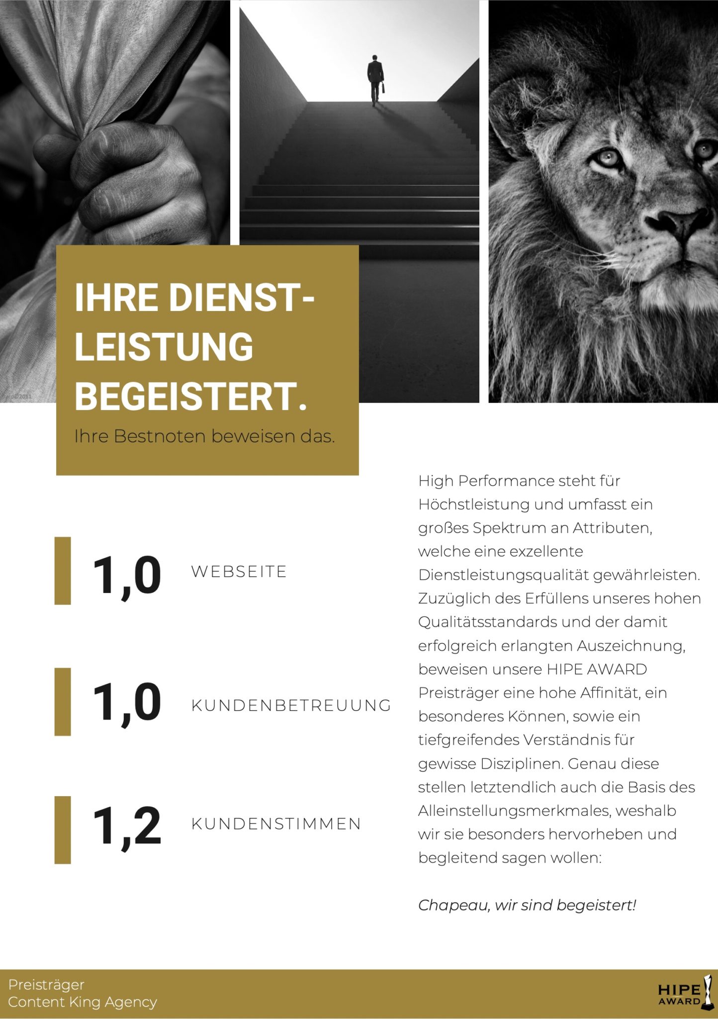 Wir wurden für unsere Dienstleistung in den Kategorien ⇨ Qualität, Leistung, Service und Effektivität.